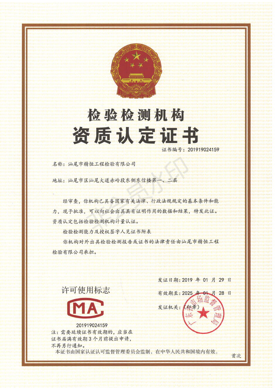 汕尾市精恒工程检验有限公司